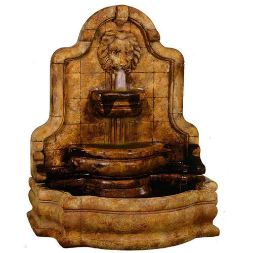 Add a touch of classic elegance to your garden or patio with the Lion Face Terrazzo Bella Fountain from Henri Studio. This impressive cast stone fountain features a flat wall design with a detailed lion face sculpture and two tiered edges. The unique narrow basin and flowing water create a captivating water feature for your outdoor living area.