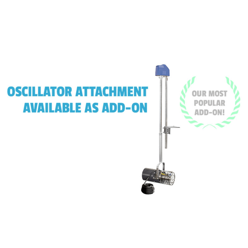 A 5-foot stainless steel pole is included, allowing the AquaSweep to reach depths of over 7 feet. For convenience, consider adding the oscillator attachment to automate rotation.