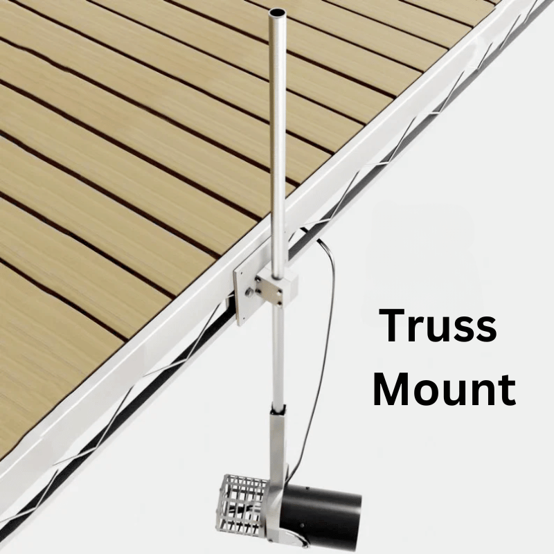 You can select the standard stainless steel mounting plate for direct attachment to your dock or explore three additional mounting choices tailored to your setup. For best results, position the AquaSweep 2-4 inches above the bottom of your water.