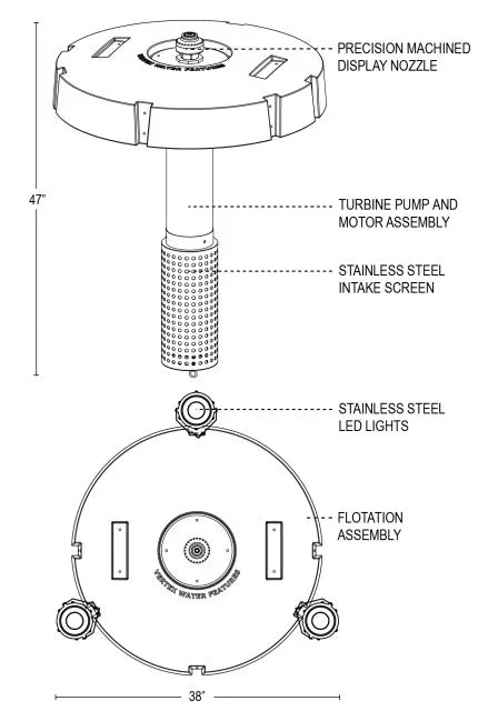 Add visual interest to your water feature with the Vertex Vertical Two-Tier Pond Fountain. Its display head creates attractive floral side jets that rise and spread, providing a great view any time. This Two-Tier pond fountain offers reliable operation and performance, featuring a UL-certified control panel and a strong submersible turbine pump. All components are fully waterproof and made from quality, corrosion-resistant materials for long-term use.